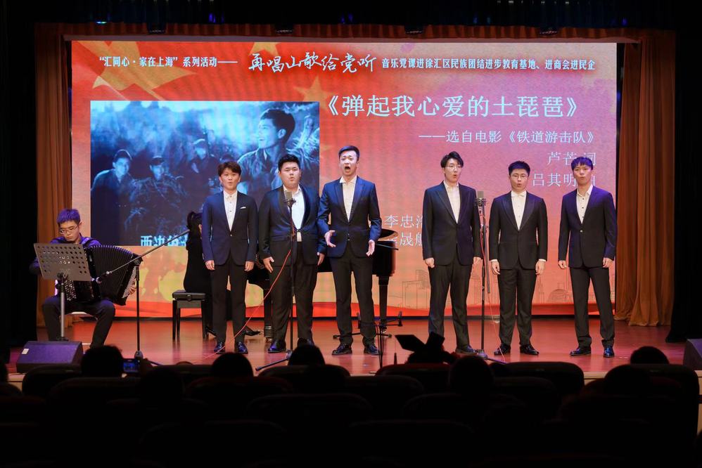 2023年6月18日下午,上海市少数民族联合会副会长、上海音乐学院少数民族联合会会长、声歌系教授陈剑波主讲和导赏“再唱山歌给党听”音乐党课在徐汇区漕河泾街道社区党群服务中心众享剧场精彩开讲。声乐歌剧系副教授盛叶担任艺术指导,来自上海音乐学院的师生共同为市民族联和漕河泾街道居民奉献了一场精彩的音乐党课。本次音乐党课是“汇同心·家在上海”进徐汇区民族团结进步教育基地、进商会进民企系列活动之一,由徐汇区委统战部、上海市少数民族联合会指导,徐汇区总商会、徐汇区少数民族联合会、上海市少数民族联合会文化专委会、上海音乐学院少数民族联合会、漕河泾街道共同主办。