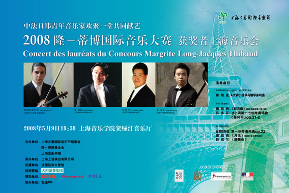 2008隆-蒂博国际音乐大赛获奖者上海音乐会于2008年5月9日晚七点三十分在上海音乐学院贺绿汀音乐厅举行。