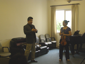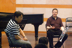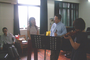 2008年6月8日费城交响乐团的乐队首席David Kim、中提琴首席Choong-Jin Chang、大提琴首席倪海叶、双簧管首席Richard Woodhams、小号首席David Bilger 5位来访我院并举行大师班。