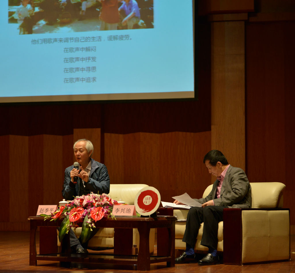 讲座在中国音乐家协会主席、西安音乐学院院长、著名作曲家赵季平的讲话,以及特邀嘉宾李兴池(陕西省陕北民歌研究会会长、国家一级作曲)生动的演唱、讲解中拉开帷幕,并通过现场示范演唱、田野经历分享、背景知识讲解、采风视频播放等方式,使上音师生、上海市民以及音乐爱好者感同身受地进行了一次丰富多彩、极具特色的陕北民间音乐之旅。