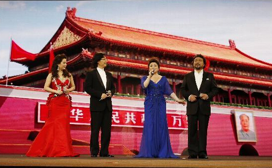 6月8日,在意大利米兰世博园大剧场,我院教师刘恋、廖昌永、黄英和歌唱家魏松(从左至右)演唱《我爱你中国》。当日,作为米兰世博会中国国家馆日的重要活动之一,世博园大剧场上演中国国家馆日专场演出,为近千名观众奉上一场精彩的艺术盛宴。