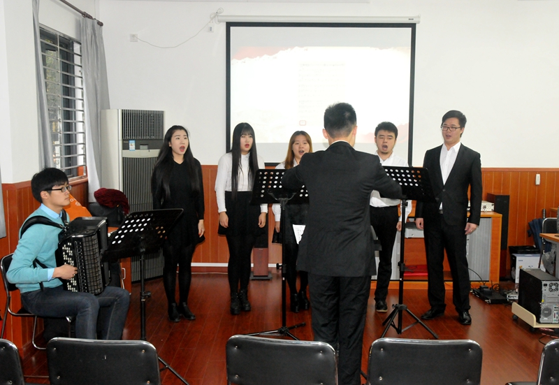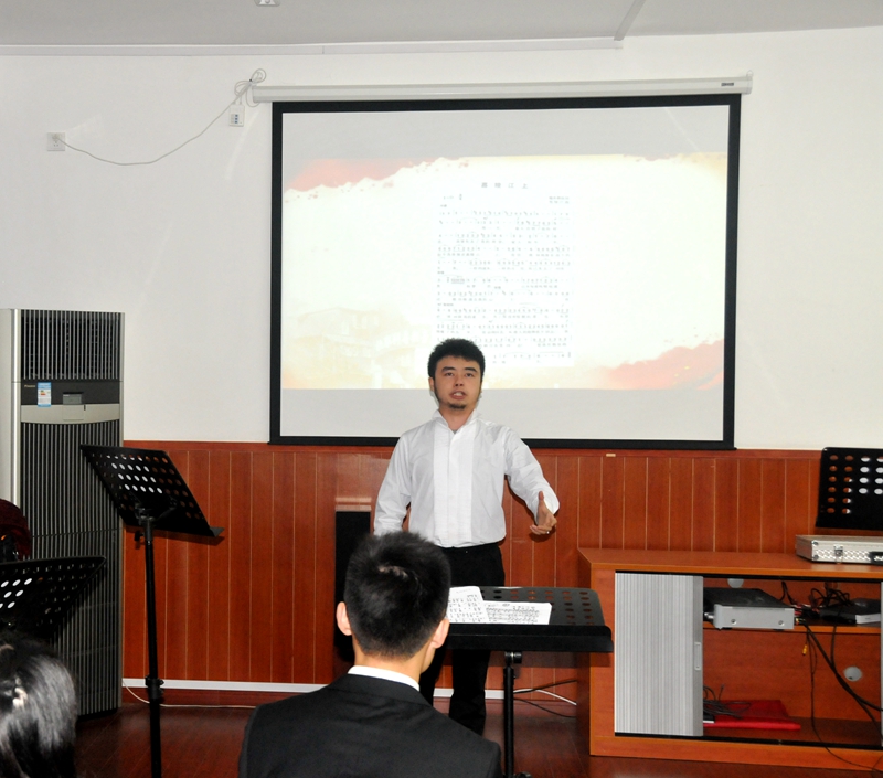 2015年11月17日中午12时,由上海音乐学院图书馆主办,校史馆承办的《弦歌不缀为抗战,经典重现在上音——上音抗战歌曲经典回眸》讲座在图书馆楼117室举行。今年是上海音乐学院建院88周年,恰逢抗战胜利70周年,在校庆月之际,肖阳老师携校史馆优秀志愿者们为上音师生开启了一段聆听与回顾上音经典战歌之旅。