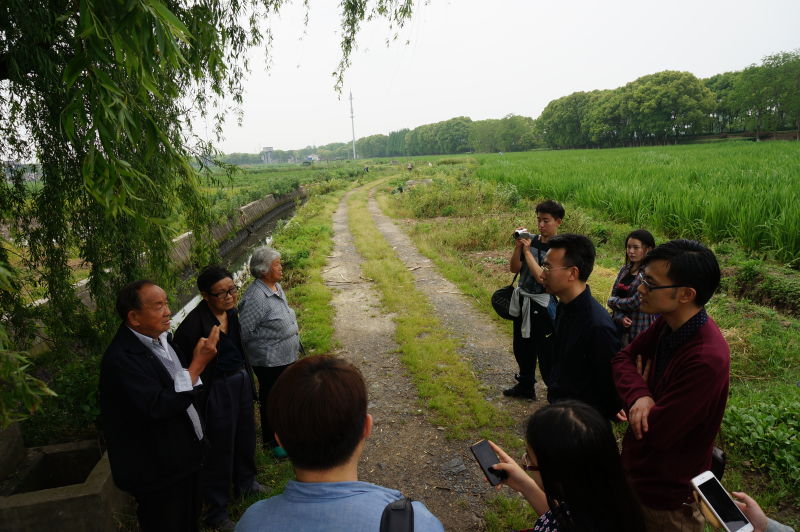 练塘镇地处上海西南,先后被评为“中国历史文化名镇”“国家生态镇”。师生一行在当地文化馆杨老师的引领下来到了田歌传承人张永联老先生的家里。由张老先生召集他的老搭档们,于开阔翠绿的田野间、清风飘逸的柳条下,四位民间艺术家为同学们展示了在长期劳动中产生的、民间歌手自行创编、以口传心记方式进行传唱、未经文人雕琢的田歌。同学们边听边记,录制了珍贵的音响资料。
