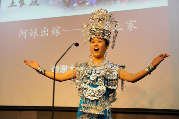 讲座中,陈剑波老师带领大家领略了土家族居住地的世外桃源风光,了解了土家族的服饰、饮食文化和民族特色习俗,还介绍了“哭嫁”这一土家族民族传统背后所包含的文化意义和音乐特色。最后还由陈老师的学生们现场带来淳朴热情的土家族民歌,获得了现场观众的阵阵掌声和一致好评。
