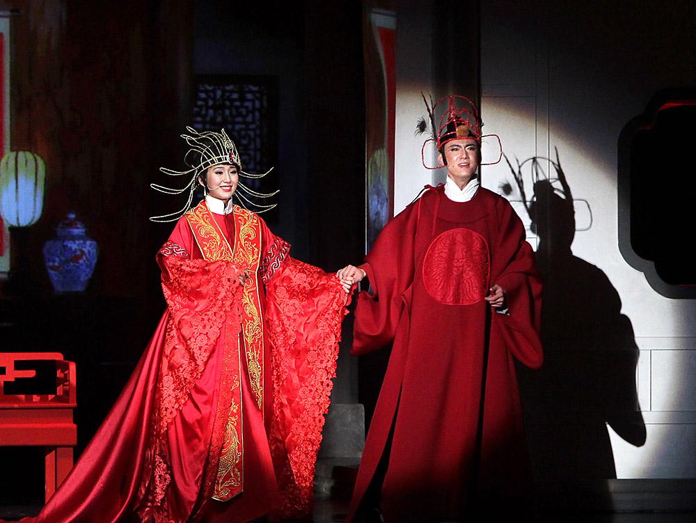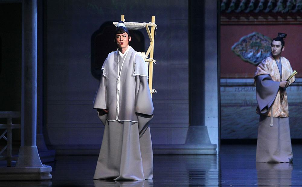 这些曲目的唱词,由上海音乐学院院长、《汤显祖》出品人林在勇操刀。他说,汤显祖的作品历来以文辞华美为人称道,他最反对文辞因曲牌格律的拘限而去削足适履。因此,《汤显祖》的唱词文白相间,既体现中国古典诗词之美,也力求消除观众的欣赏障碍。
