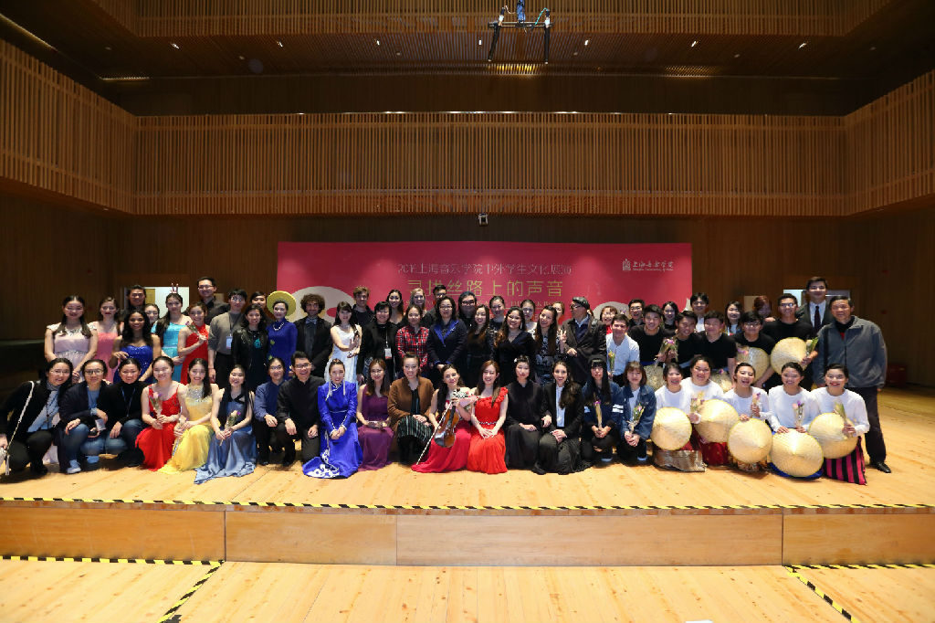 第二部分:“寻找丝路上的声音——上海音乐学院中外学生文化展演” 于12月19日晚在上海交响乐团演艺厅举行。我校师生与来自上海外国语大学、上海理工大学、上海师范大学、上海交通大学、同济大学等高校的外国留学生共300余人欢聚一堂,共同聆听丝绸之路上的声音。上海音乐学院党委副书记、纪委书记刘艳及各系部专业教师代表应邀出席。