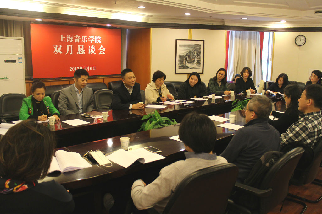 2017年4月6日下午,上海音乐学院党委召开统战双月恳谈会。我院党委书记、院长林在勇出席会议。我院党办、综改办、统战部负责人,民盟、九三学社、民进、致公党、民革、农工党各民主党派上音支部成员,上音侨联、民族联等统战团体成员,及无党派代表人士共20余人参加了本次会议。