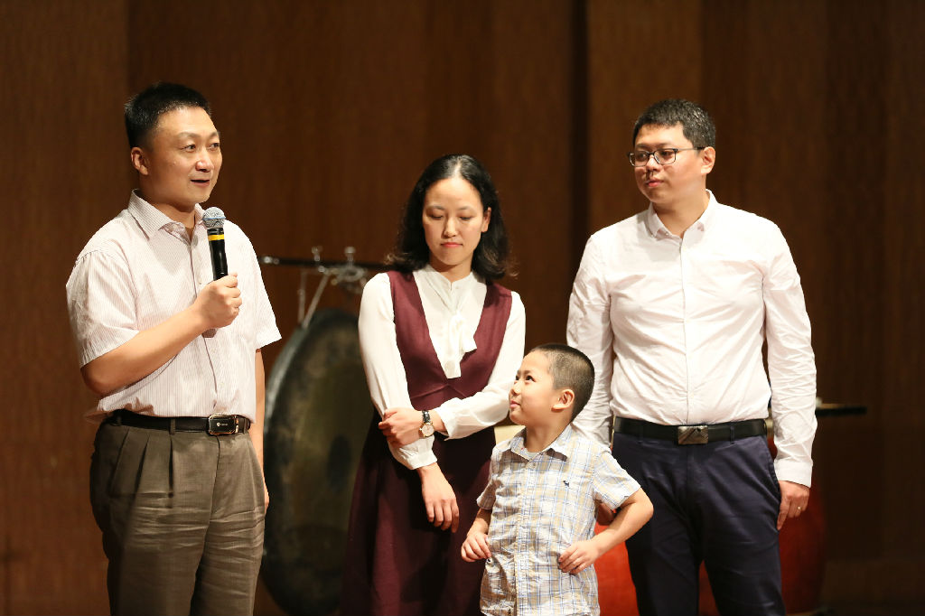 音乐会正式开场前,主持人刘红教授邀请上音歌剧院项目部副经理殷浩一家登上舞台,请他们以亲身经历讲述了建设者们“舍小家为大家”的动人故事。让人意想不到的是,虽然殷浩已在上音的大院里工作了近两年的时间,他却是第一次走进贺绿汀音乐厅。