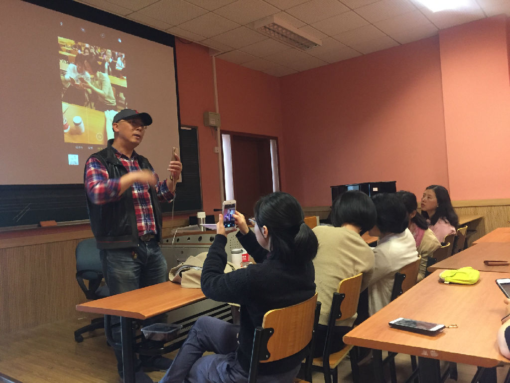 如今,手机已经成为我们生活中不可或缺的一部分,集各种功能于一身。而其中,拍照功能是手机除了通讯之外的另一大重要功能,各大品牌纷纷推出拍照手机、双徕卡镜头、美图手机等等。又到春暖花开时,大家纷纷外出踏青游玩,感受这春的美好。对于非专业的我们来说,手机无疑是记录身边美好景致的最佳工具,无论是一路繁花,还是萌娃靓妹爱宠,都可能成为照片中的主角。在讲座中,王英敏老师从手机摄影的构图、光线运用、手机摄影小工具等对大家进行指导和讲解,之后又教大家在手机上,通过snapseed软件对拍摄好的照片进行后期制作。两个半小时的时间很快过去,讲座结束后大家纷纷跟老师进行个别交流,并建立微信群,以便未来随时就后期制作等问题继续向老师求教。