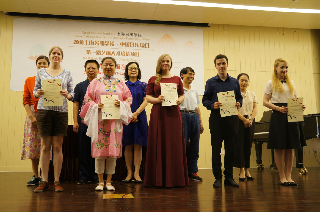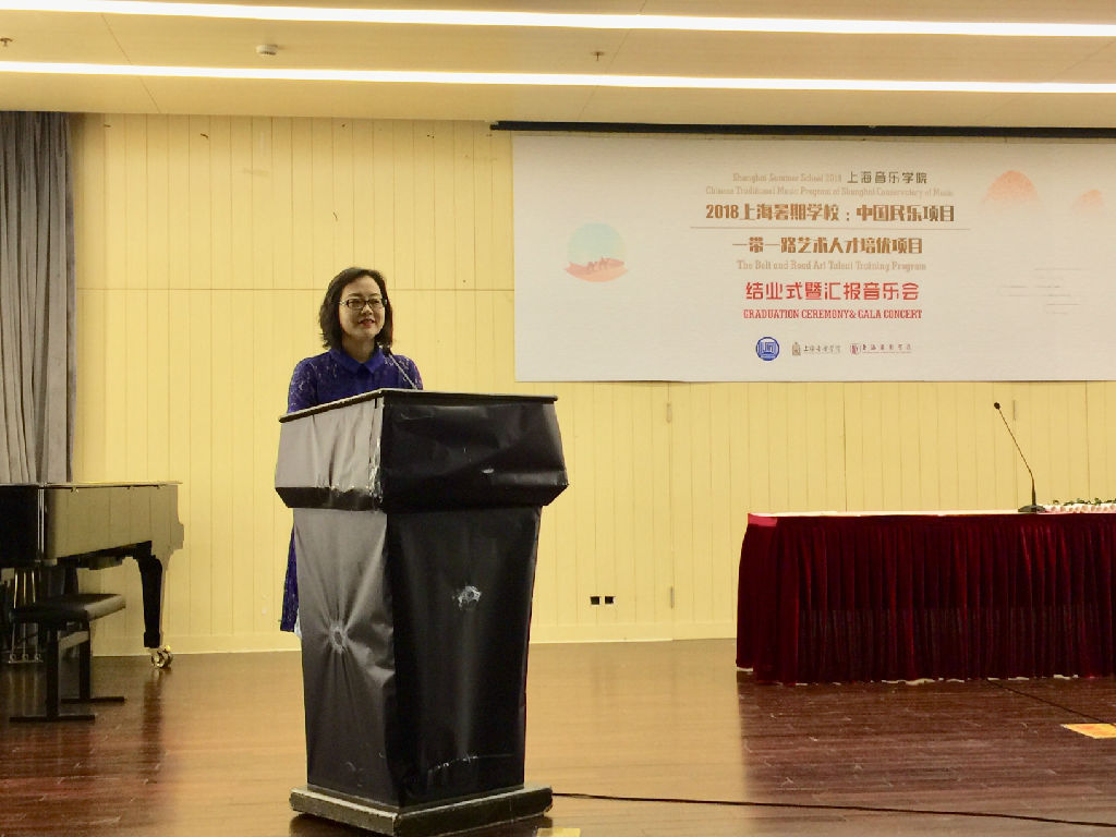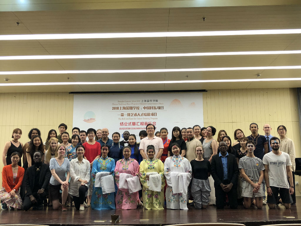 2018年7月5日,上海音乐学院2018外国留学生“上海暑期学校中国民乐项目”、“一带一路艺术文化人才培优”项目结业式暨汇报演出在北楼报告厅举行。上海音乐学院党委副书记刘艳,南京艺术学院国际交流学院副院长王茜,以及上海戏剧学院国际交流中心、上海音乐学院国际交流处、上海音乐学院民乐系等有关领导和来自中医药大学、上海戏剧学院的外国留学生们约150余人出席。