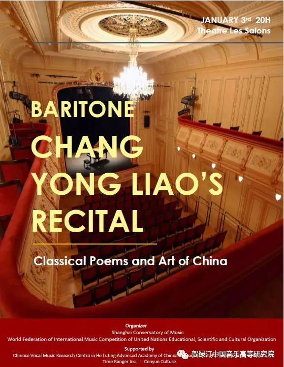 位于瑞士西部边境的日内瓦堪称一座“世界之城”——联合国驻欧洲总部和国际红十字会等国际组织汇集于此,一系列深刻影响人类社会与文化进程的条约在此缔结。联合国万国宫前,国旗方阵庄重挺拔,迎风飘扬,宣示着人类团结与文化交融。值此新年之际,日内瓦的国际文化长卷再被添上浓重一笔。1月3日晚,在古雅而温馨的让·佛朗索瓦·巴托洛尼街沙龙剧院,一场形式新颖、别出心裁并全方位展示中国古典艺术底蕴的先河之作——《中国古典诗词与书画——廖昌永中国艺术歌曲独唱音乐会》成功举办。