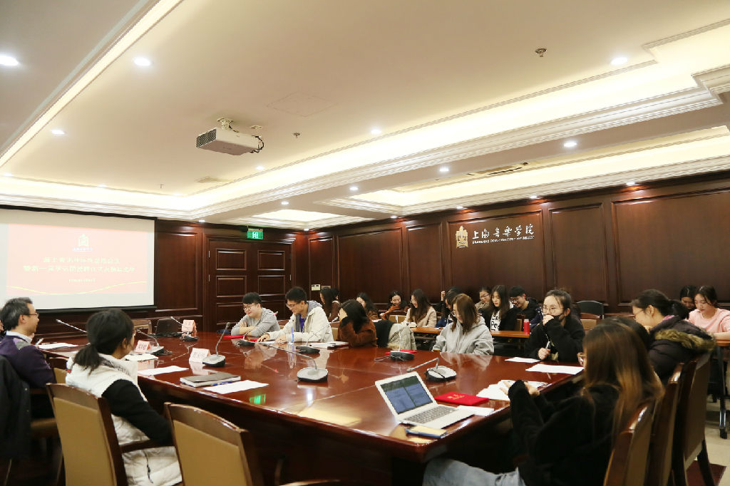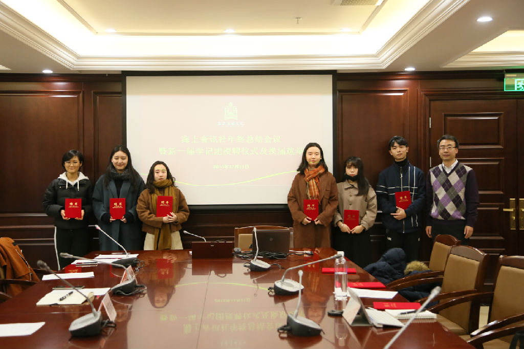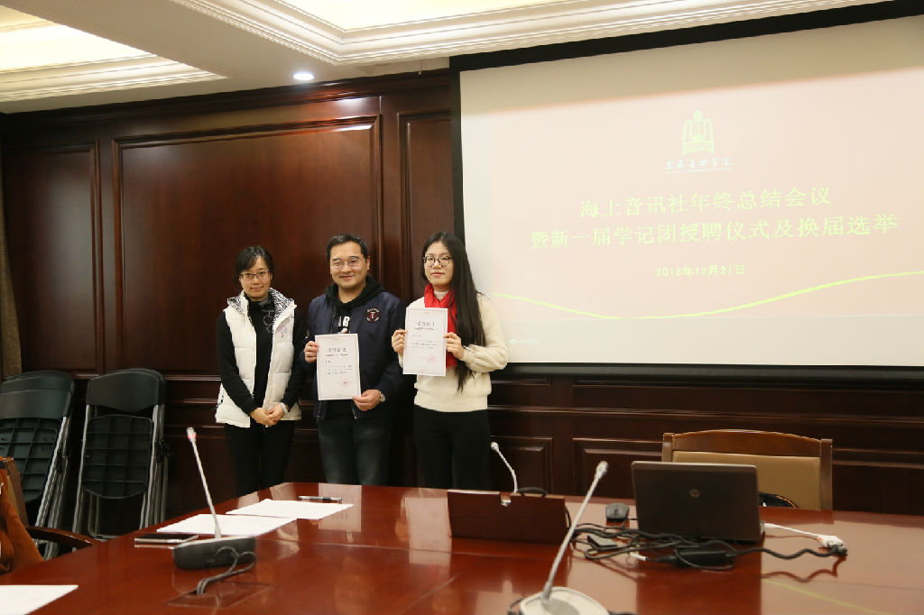 2018年12月21日中午,上音学生记者团“海上音讯社”召开2018年终总结会议,同时举行新一届学记团授聘仪式及换届选举。上海音乐学院党委常委、宣传部部长吴学霆、宣传部副部长沈黉婕和学记团各位指导老师,以及学记团全体成员参加本次会议。