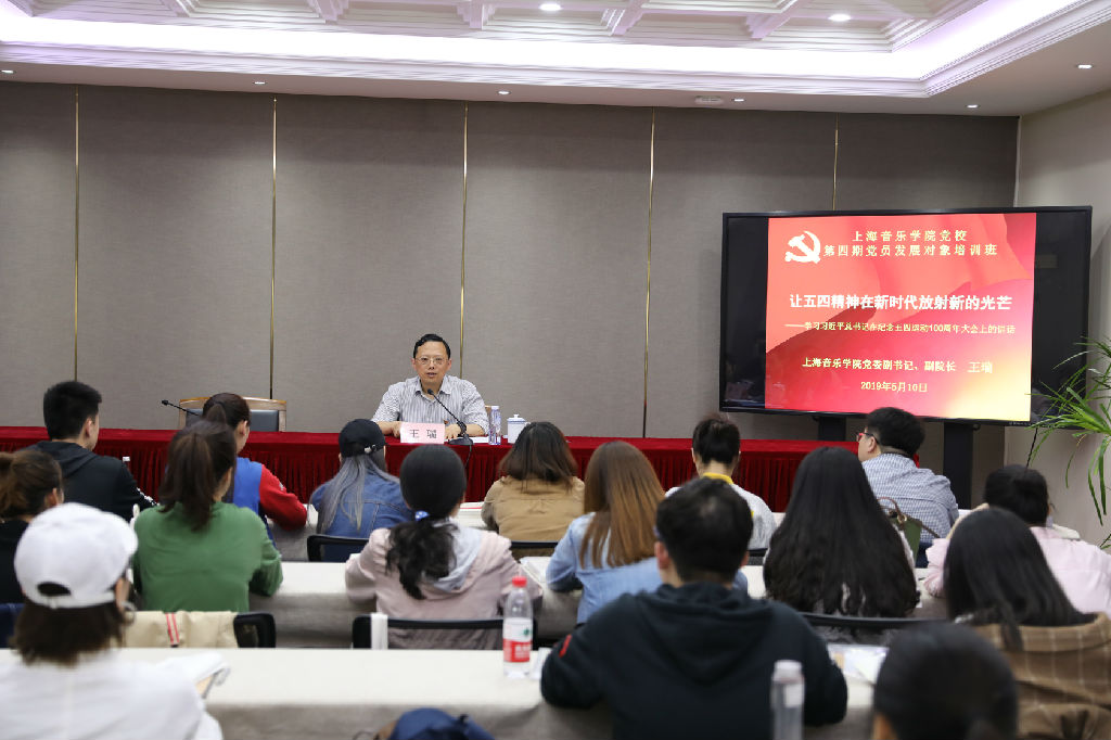 2019年5月10日下午,上海音乐学院党校第四期党员发展对象培训班专题党课在聆淮楼大会议室举行。院党委副书记、副院长王瑞应邀为本期培训班上专题党课,院党委常委、组织部部长、党校副校长冯磊主持党课。