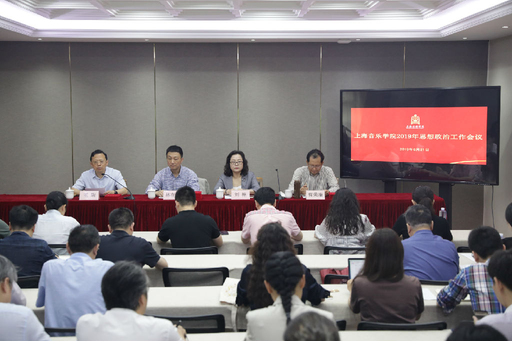 6月21日上午,上海音乐学院2019年思想政治工作推进会议在聆淮楼四楼召开。校党委书记、思想政治工作委员会主任林在勇,校党委副书记、纪委书记、思想政治工作委员会副主任刘艳,校党委副书记、副院长、思想政治工作委员会副主任王瑞,校党委副书记、思想政治工作委员会执行副主任曹荣瑞,学校思想政治工作委员会委员等参加会议。会议由王瑞主持。
