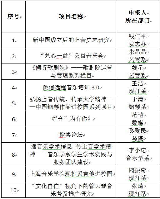 为充分发挥校园文化、志愿服务在培育和践行社会主义核心价值观、文化传承与创新中的重要作用,营造良好校园文化环境和氛围,自2017年起,上海音乐学院启动年度校园文化建设、志愿服务项目申报评审工作。
