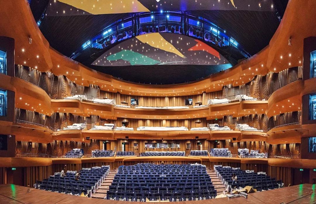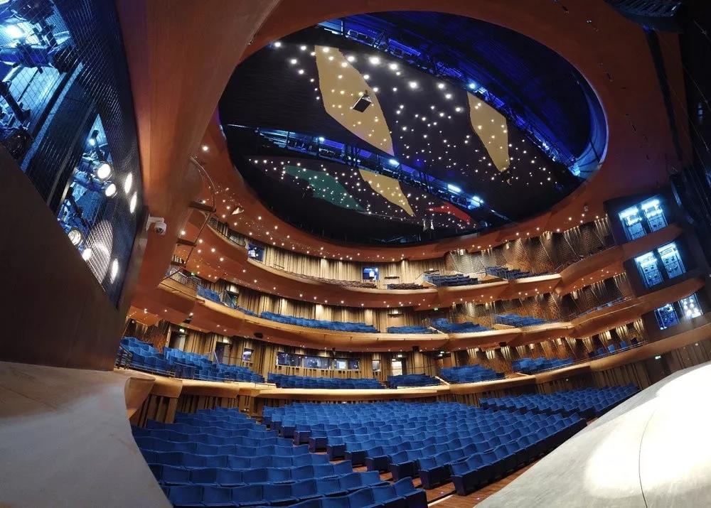 上音歌剧院坐落于上海音乐学院东北角、淮海中路和汾阳路的交界处,是中外团队联合设计的国内首个采用整体隔振技术建造的全浮结构歌剧院。 上音歌剧院为8层综合体,地下3层,地上5层,最高处建筑高度为34米。拥有1个1200座的中型歌剧院,4个排演厅分别为歌剧、管弦乐、声乐和民乐服务,还有1个专业学术报告厅以及一些设备用房和近200个车位的地下车库。是一个集音乐演出、音乐教育、音乐创作、国际交流的综合体。 歌剧院外形犹如一艘扬帆起航的领航船头,翘首引领。外部通过巨大的几何体量的摆放和排列,使建筑充满了厚重的雕塑感。内部不同体块之间通过走廊及天花板上的五彩色块流线联系起来,具有各种功能房间的集合楼体依然有很多公共和通透的空间,整体具有极好的采光和流动感。缤纷色块的天花板也塑造了空间的节奏感,给人以轻松、自由和愉悦感。 上音歌剧院内部也处处体现着艺术的品味,所有楼座的拦河不仅具有建筑美感,同时具备声学反声功能,观众厅菱形穿孔板侧墙内设有可变吸声装置,吊顶还设有升降天花,根据演出类型的不同,可调节升降天花高度从而得到不同的混响效果,以满足不同的演出需求。 观众厅借鉴古典歌剧院的形式,呈现马蹄形,所有楼座都略微向舞台倾斜,层层叠落金色木质感的楼座形成有韵律的雕塑序列,使更多观众可以看到乐队指挥和乐池,并更清楚地看到舞台。池座背后都设置了字幕屏,最多有八种语言可供选择。 极具专业性的自然声场为歌剧、音乐剧、室内乐、民乐等演出提供了一个展现梦想的舞台。 1、贺绿汀 中国著名的作曲家,音乐家,上音的老校长。他的一生,伴随着新中国的解放、新中国的诞辰、发展和崛起。 2、春上海1949 以符合潮流的音乐剧的形式、上音音乐剧系的优秀学子,呈现上海解放战争时期,四行仓库中共地下党工作者,冒着生命危险,坚持斗争的故事。 1、在品字形舞台灵活移动的车台 品字形舞台结构 在品字形的舞台的主舞台后舞台和左舞台,车台可以在这三个舞台上灵活移动。除了常规前后运行外,还可以在主升降台实行90度拐弯前后运行,满足各种形式的演出,也给艺术家们提供了更大的创作空间。 2、富有弹性的吊挂式芭蕾舞车台 由于剧院的场地限制,芭蕾舞地板并没有以传统方式储藏在地面,而是悬挂式储藏,需使用时放在车台上开出。 3、座椅背后的新媒体交互触摸屏 在池座与池座高区所有法国进口的座椅背后,可显示8种语言字幕的新媒体交互触摸屏成为了关注的焦点。但是也有很多观众会担心屏幕过亮会影响观看演出的体验。不用担心!所有屏幕都设置和调试了屏幕的亮度,亮起时像罩上了防窥膜的效果,并不会影响演出的观看。 4、从下往上的大幕储藏升降机 同样是由于场地的限制,大幕的储藏充分利用了舞台下的空间。而且,大幕储藏升降机是自下而上往上输送幕布的哦!这也是在其他的剧院极为少见的。 5、效果非凡的成像灯 位于歌剧厅顶部移动天花上方的两排面光, 一排为32个5度成像灯,另一排为28个10度成像灯。灯具提供的切片可以呈现不同的几何图形,起到特殊的舞台照明效果。