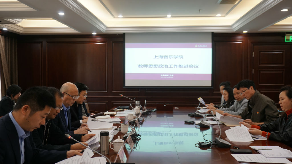 10月28日下午,上海音乐学院教师思想政治工作推进会在汾阳路校区办公楼408会议室召开,就学院教师思想政治工作责任分工与师德师风考核工作方案进行了深入研讨。院党委书记徐旭、院长廖昌永出席会议并讲话。院党委副书记曹荣瑞,党委常委、副院长刘英、冯磊,相关职能部门负责人,各党总支、直属党支部书记出席会议。会议由冯磊主持。