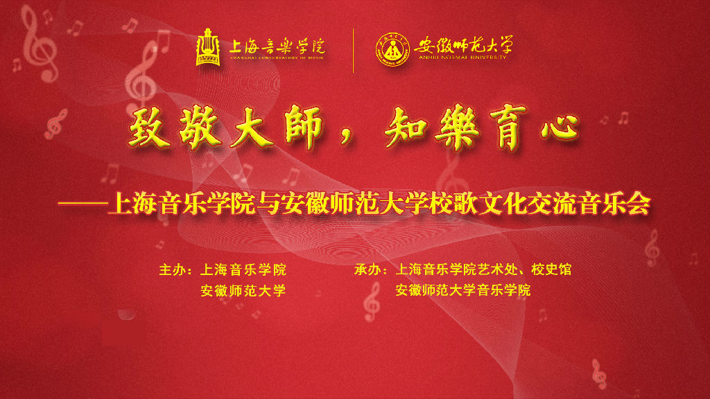 校歌,是大学文化精神的重要象征,是学校弘扬优秀传统及对外宣传的最好载体。国立音乐院(今上海音乐学院)培养的诸多作曲家在20世纪30-40年代为人大、天大、交大、同济、浙大、立信等近30所国内知名高校创作校歌,对校歌文化产生深远的影响,《安徽师范大学校歌》亦是由我院创始人之一萧友梅先生作曲、时任省立安徽大学校长程演生先生作词,可见两校的深厚友谊。此次音乐会,上海音乐学院与安徽师范大学音乐学院以“校歌”为文化接触点,通过对校歌的创作背景、文化衍生的历史溯源、以舞台音乐会的形式呈现此次艺术交流。以此契机来共同缅怀、追思老一辈艺术家,并且在传承爱国之心、文化繁荣、立德树人的重要使命中贡献一份应尽的职责与力量。