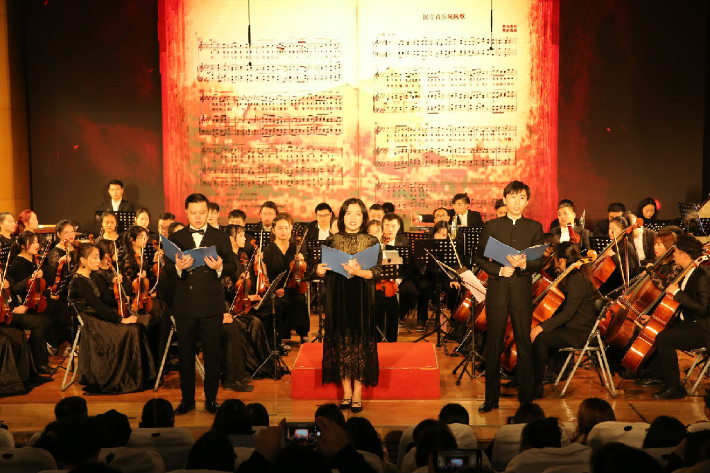 当晚的校歌交流音乐会,以安徽师范大学建校90周年的宣传片来开篇,整场音乐会分别由上海音乐学院“海尚音苑”社的学生、安徽师范大学音乐学院的师生同台献演了萧友梅的《安徽师范大学校歌》、刘炽的《我的祖国》、贺绿汀的《嘉陵江上》、丁善德《新中国交响曲》的第三乐章《秧歌舞》、高自成的《高山流水》、刘英的《正月十五闹雪灯》、黄自的《玫瑰三愿》等我院师生创作的音乐作品和献礼中华人民共和国成立70周年的经典之作,我院《国立音乐院院歌》作为压轴曲,台上台下齐声高歌,将音乐会气氛推向了高潮。