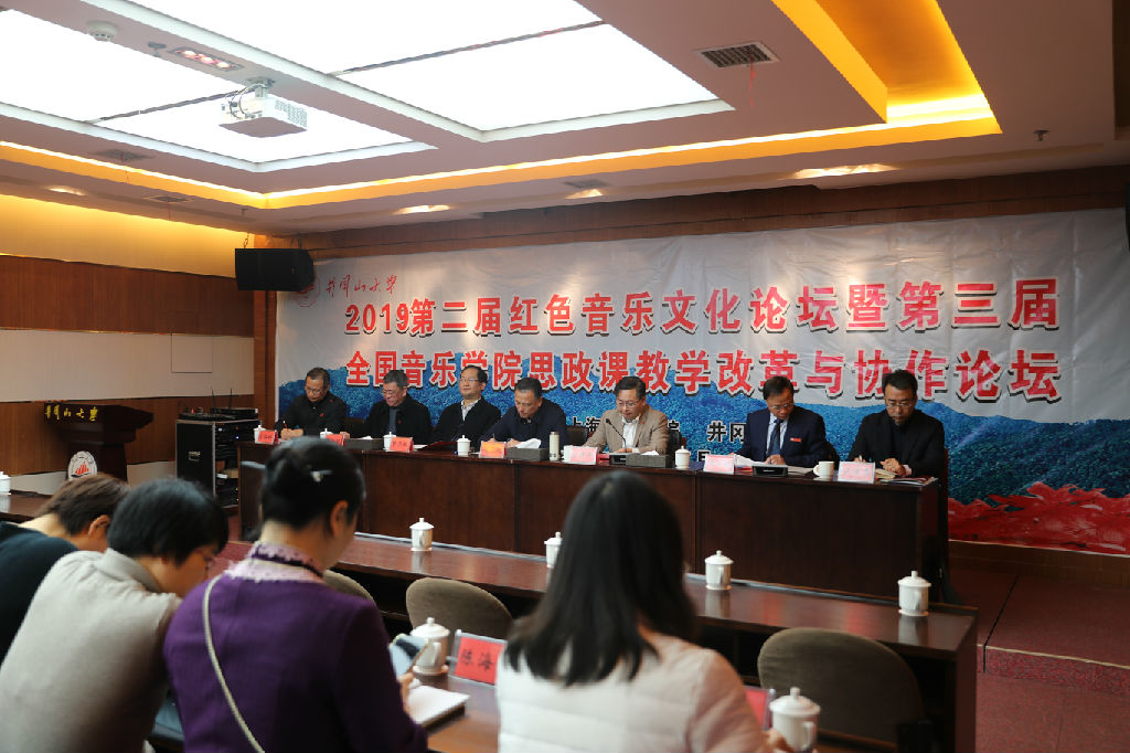 12月20日至22日,由上海音乐学院、井冈山大学共同主办的第二届中国红色音乐文化论坛暨第三届全国音乐学院思政课教学改革与协作论坛在井冈山大学召开。中国井冈山干部学院常务副院长梅黎明,井冈山大学党委副书记、校长曾建平,党委副书记温和瑞,党委常委、副校长陈小林,上海音乐学院党委副书记曹荣瑞,以及来自中国井冈山干部学院、上海音乐学院、陆军步兵学院、赣南师范大学、星海音乐学院、沈阳音乐学院、武汉音乐学院、延安大学、江西师范大学、湘潭大学、湖南科技大学、河北师范大学、井冈山大学等10余所院校的领导、专家和学者60余人出席,共商思政课教学改革,共话红色音乐文化发展。