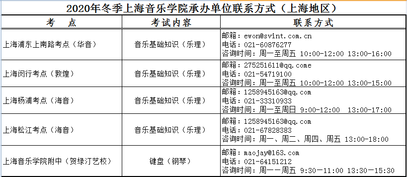 二、疫情期间,暂停现场接待,请电话或邮箱联系各考点。联系方式如下: