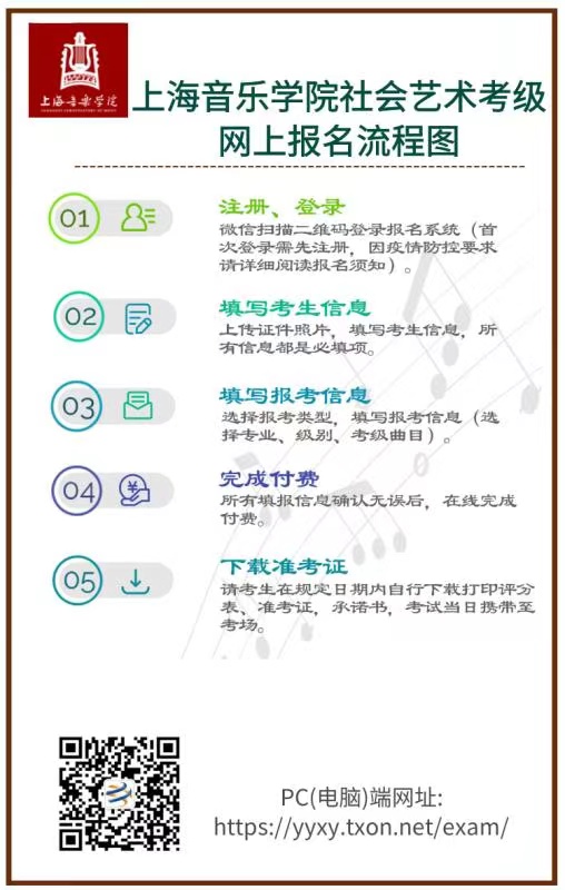 6、自2018年起,报考上海音乐学院社会艺术水平考级九级及以上需具备相应乐理等级证书,报名时须填写对应乐理证书编号,否则将无法报名;(西洋器乐需B级,民族器乐需C级)