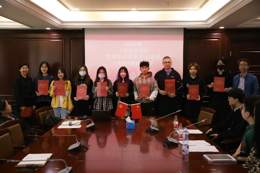 4月28日中午,上海音乐学院党委宣传部学生记者团年度聘任暨表彰大会于行政楼408举行。党委宣传部部长吴学霆、副部长肖阳,以及宣传部、“海上音讯社”成员出席会议,副社长蔡岳均主持会议。