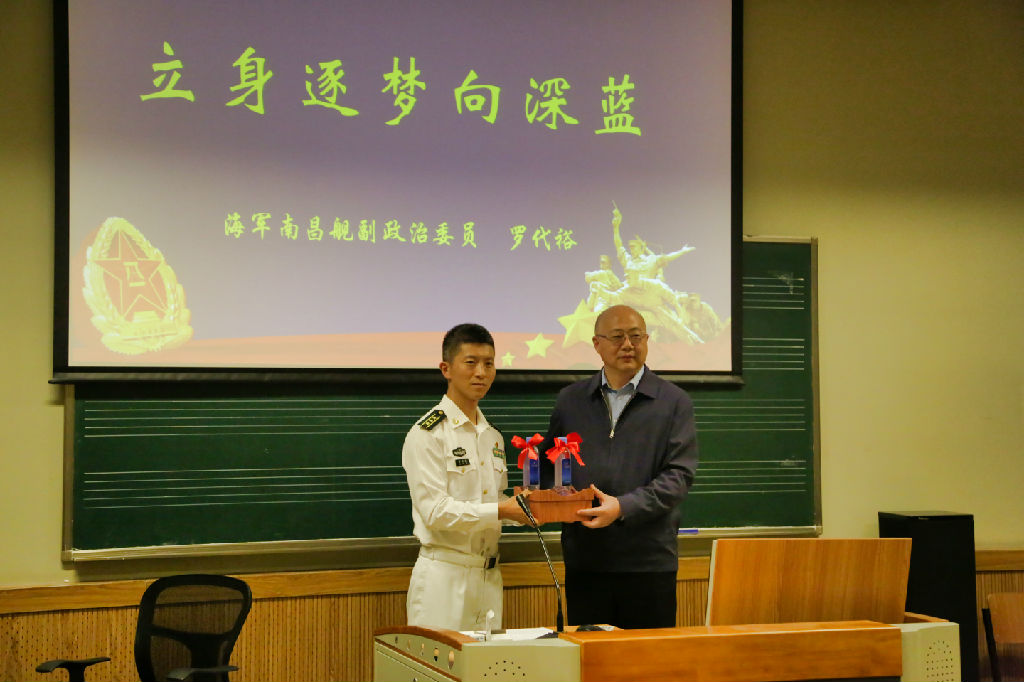 “呼叫81192,祖国和人民在等你,请返航!”今年是“海空卫士”王伟牺牲20周年。人民海军一路走来,是无数海军官兵听党指挥、赤胆忠诚、不懈奋斗的壮阔历程。罗代裕结合自身从军报国经历与南昌舰发展历程,融入地缘政治理论、海军楷模事迹和习近平总书记关于海军建设的重要指示,为上音师生讲述了新时代海军的使命与担当。他指出,南昌舰跟随着新中国发展的脚步,记录着中国海军的光辉历程,也承载着中国历代海军人的光荣梦想。