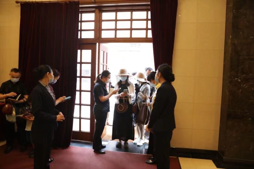 14:15,观众来带汾阳路20号的正门处,开始分批进场。现场排列有序,观众依次通过“上音众乐验票处”和“入校测温房”后进入校园,沿指示地标前往贺绿汀音乐厅。本场音乐会作为上音党史学习教育“我为群众办实事”实践活动的一项实事,面向社会公众开放,既切实解决了大众对于高雅艺术的需求,亦为全社会提供了内容丰富、形式新颖的党史学习教育。当日,湖南省人民政府驻上海办事处党组一行也来到现场,开展党史联组学习。