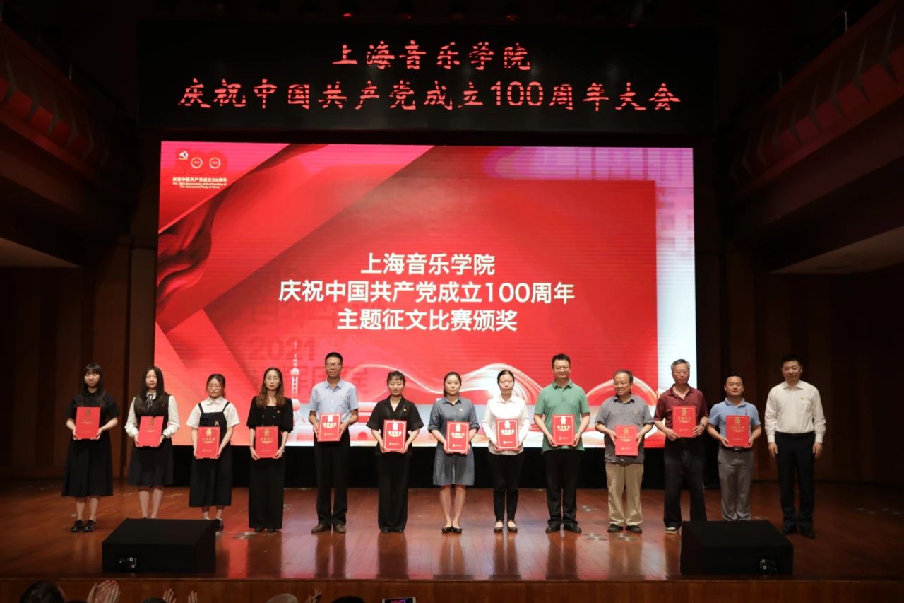 6月30日下午,上海音乐学院隆重举行庆祝中国共产党成立100周年大会。在本次大会中,马克思主义学院、公共基础部联合党支部的多名教师受到表彰。其中徐宇宏获得上海音乐学院“优秀共产党员”称号;董少校撰写的《在纪念地现场感悟党史》一文获得上海音乐学院庆祝中国共产党成立100周年主题征文比赛二等奖;由党支部全体教师创作的歌曲《迈向伟大复兴》获得上海音乐学院庆祝中国共产党成立100周年歌曲征集大赛优秀奖;由李敏主讲的《初心映征程信仰谱乐章》、杨赛主讲的《传承红色经典,唱响时代精神》获得上海音乐学院庆祝中国共产党成立100周年“音乐党课”示范课。