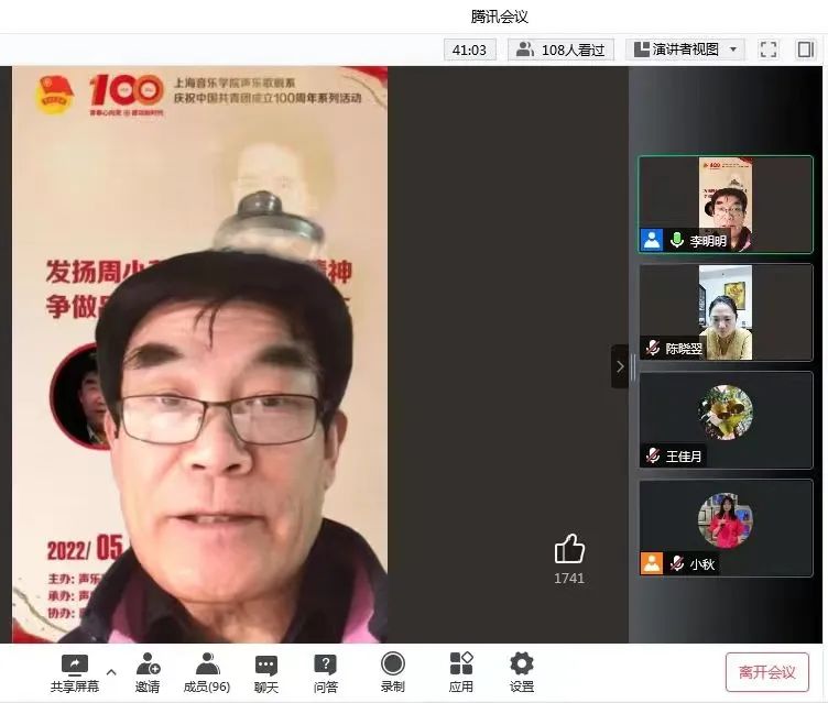 为庆祝中国共青团成立100周年,2022年5月4日下午2点,由上海音乐学院声乐歌剧系党总支、关工委主办,离退休工作处、院团委协办的暨“发扬周小燕先生的七爱精神,争做品学兼优的合格大学生”主题讲座于线上平台腾讯会议进行,讲座由关心下一代工作委员会副会长、退休党总支书记、老教授协会秘书长李明明老师主讲。