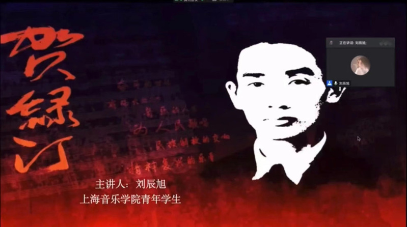 上海音乐学院声乐歌剧系本科五年级同学刘辰旭的课题为“聆听百年回响——欣赏新时代民族歌剧《贺绿汀》”。“喜迎二十大,永远跟党走,奋进新征程”,作为上音青年学生,刘辰旭同学讲述的微课题是以上音原创歌剧《贺绿汀》为主题,从创作背景、歌剧巡演、歌曲赏析、歌剧电影四个方面讲述,弘扬先辈精神,奏响时代强音。