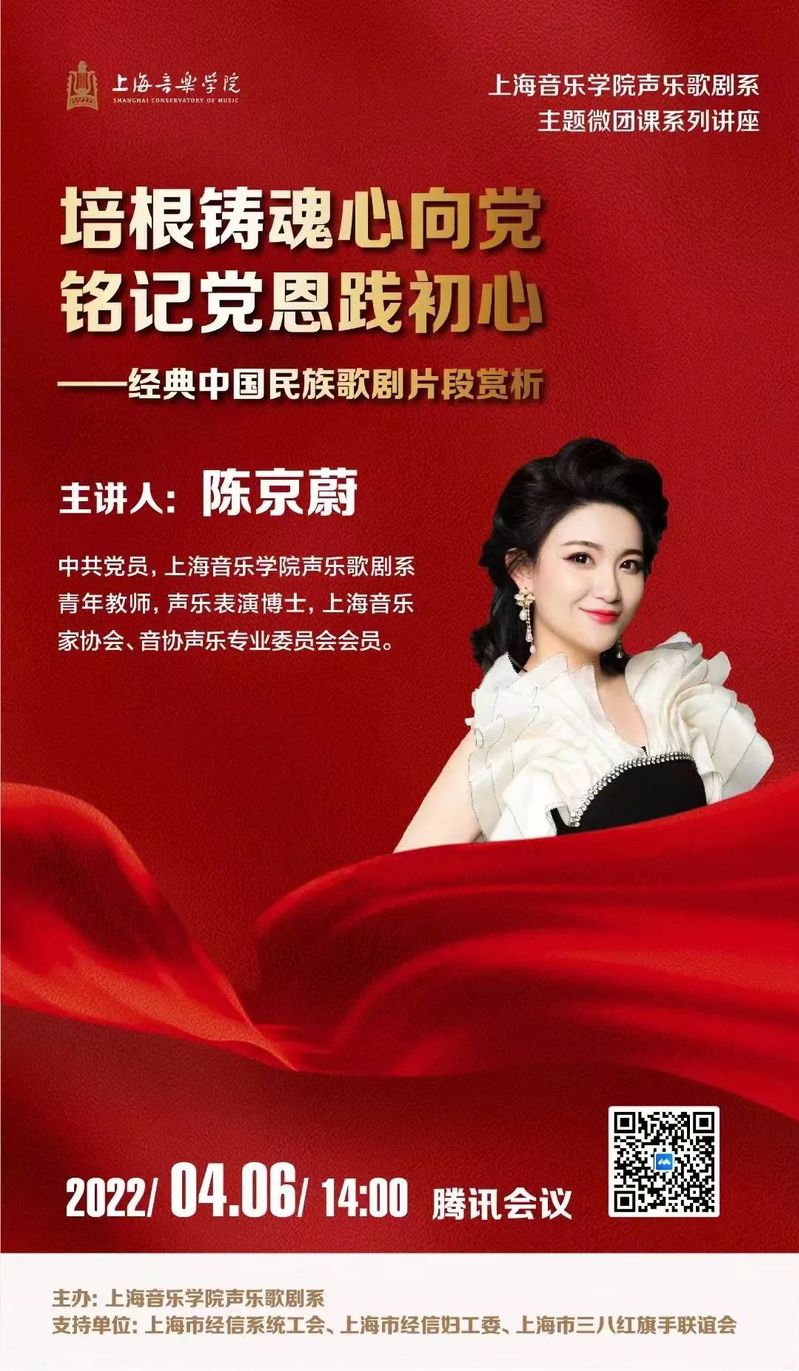 为深入学习宣传贯彻党的十九大和十九届历次全会精神,全面贯彻习近平总书记关于青年工作的重要思想和关于教育的重要论述,用党的创新理论武装全团、教育青少年,校团委举办2022年上海音乐学院“喜迎二十大、永远跟党走、奋进新征程”主题微团课大赛。声乐歌剧系积极响应学校号召,组织师生踊跃报名参赛,共申报5个微团课项目。