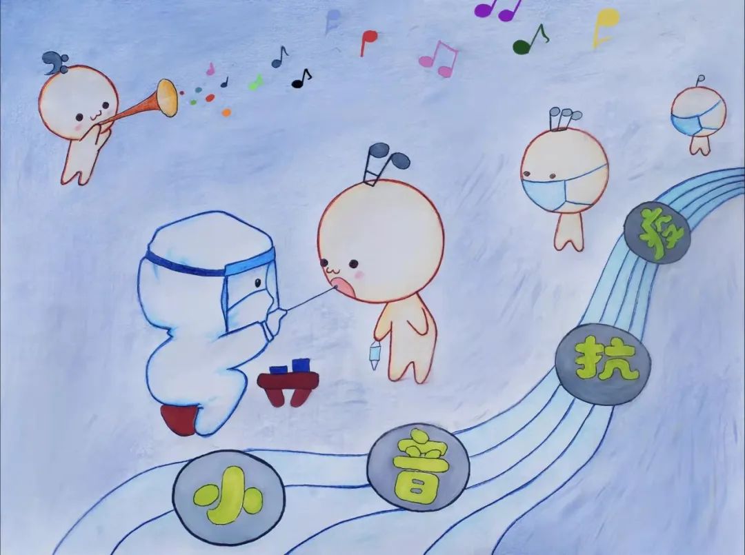 在此期间,不少同学们都以自己的方式宣扬着正能量,吕勃言同学自发创作了以抗疫为主题的钢琴三重奏作品《幻想曲·新生》。秦简同学以她童真的笔触记录校园做核酸的场景,可爱而又温馨;留学生金以斯帖同学则拿着手机记录校园的每一角落;王亦果同学为暂时不能见面的校内校外同学制作“云视频”等。