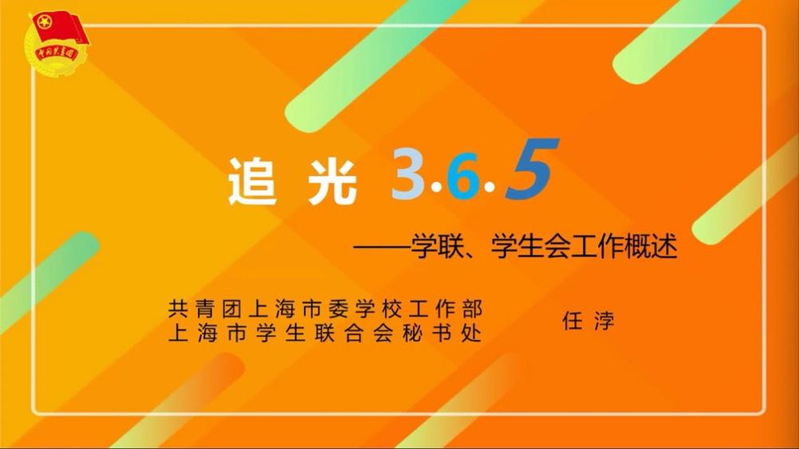 1919年第一次全国学生代表大会在上海举行,全国学联正式成立。去年8月17日,中华全国学生联合会在京召开第二十七次学联代表大会,提出政治可靠、砥砺奋进、根植同学、阳光清新的目标,将工作分为知行工程、聚力工程、强基工程。任浡老师向同学们介绍了上海的品牌项目,例如上海大学生骨干培养学校、“知行杯”、“挑战杯”等。