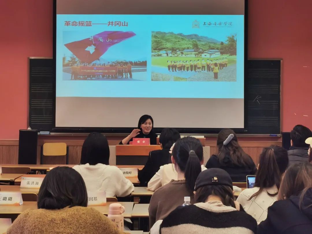 张卓老师以“用音乐述说党史,以旋律聆听召唤”为题,给同学们带来了一节独具特色的音乐党课。