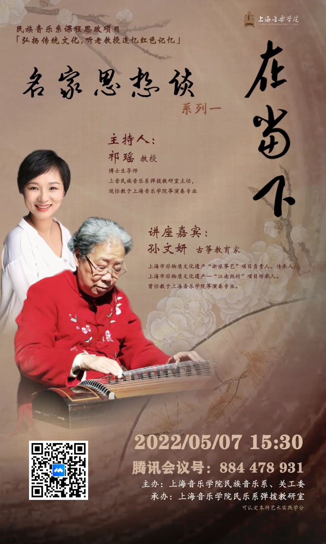 因教学安排冲突,故原定于2022年5月7日举办的上海音乐学院民族音乐系课程思政项目「弘扬传统文化,听老教授追忆红色记忆」在当下——名家思想谈系列(一)讲座将延期举办,具体时间另行通知。