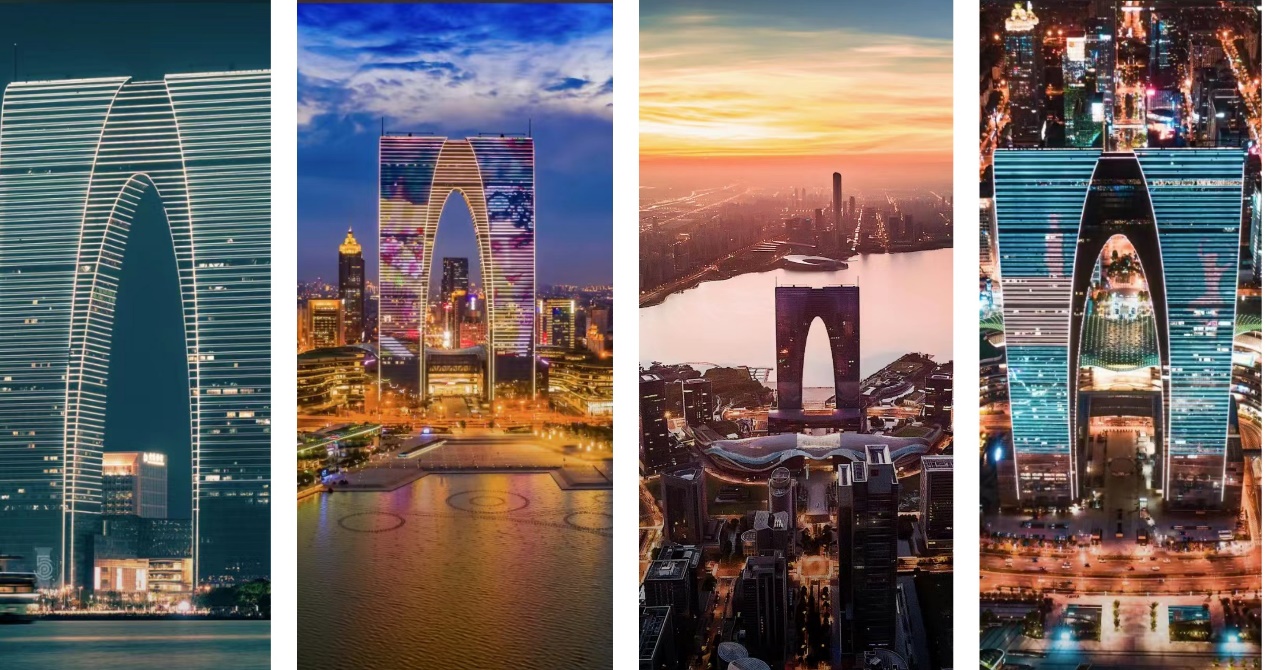 “东方之门”位于苏州金鸡湖畔,是一座结构复杂、极具现代化风格的超高层建筑,高301.8米,被誉为“世界第一门”。作为苏州最火的网红地标打卡地,一面见证着这座千年古城的历史文化,另一面展示着苏州蓬勃发展的经济实力,展现出苏州城市的博大胸怀,它是苏州现代与开放的代表,它是“古老中国走向世界的新起点,是世界了解东方的新门户”。