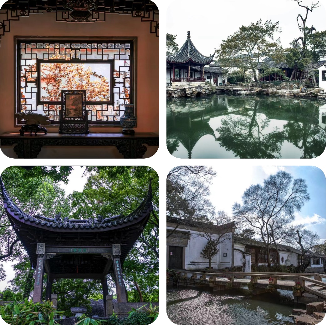 沧浪亭坐落于苏州城南,始建于北宋,傍水建亭,以“沧浪濯缨”之典故取名。建园风格是以崇阜广水、城市山林为特色,园外清流萦绕,园内古木参天,竹影婆娑,复廊漏窗精美无比。山巅沧浪亭为康熙年重建,柱联“清风明月本无价,近水远山皆有情”为中国名联。该园作为苏州现存历史最悠久的古典园林,见证了姑苏城2500年的岁月变迁。