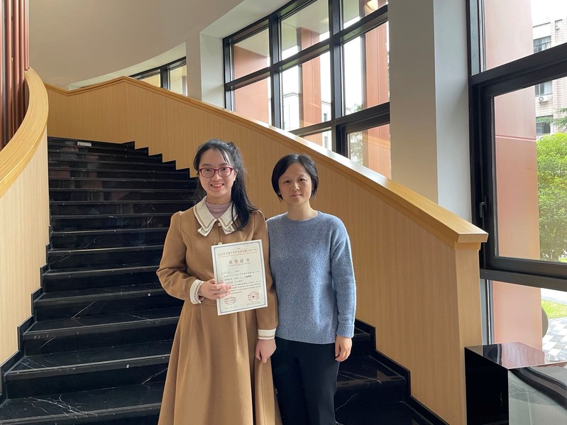 特等奖获得者邹韩骄和指导教师陈彬彬合影