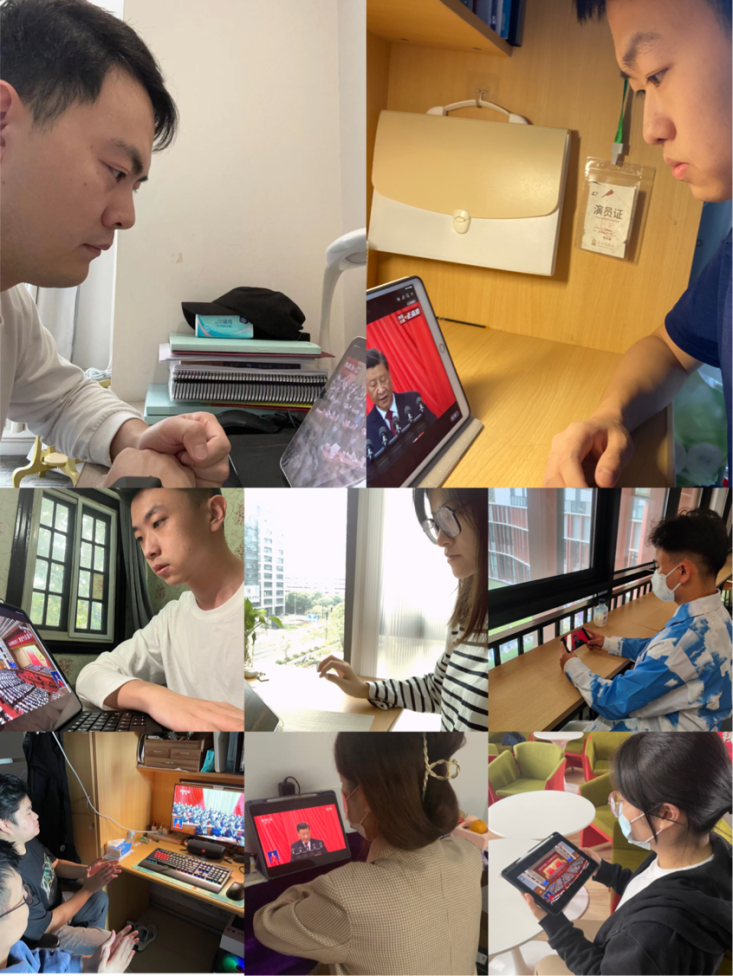 10月16日上午,声乐歌剧系党总支组织师生党员、入党积极分子、入党申请人自行或集体观看中国共产党第二十次全国代表大会开幕直播。“二十大”迅速成为声歌系师生的话题关键词,大家备受鼓舞,激动万分,纷纷表达自己的所思所感。