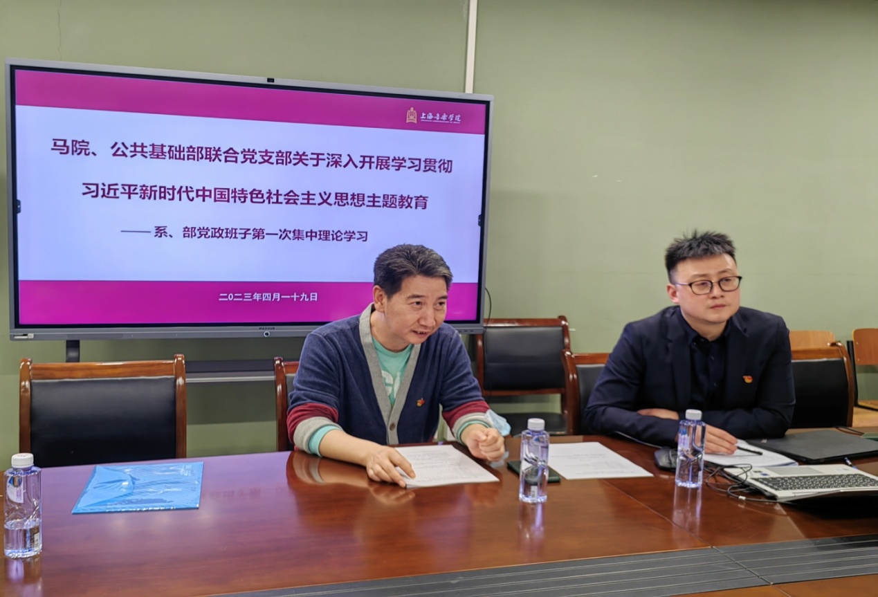 马院、公共基础部联合党支部认真对照《上海音乐学院学习贯彻习近平新时代中国特色社会主义思想主题教育工作提示(一)》,抓好理论学习,统一思想认识。4月19日下午,支部党政班子于图书馆中庭会议室开展第一次集中理论学习。支部书记汤隽杰主持,副书记、公共基础部主任张锷,副书记、马克思主义学院院长张卓参加本次学习。