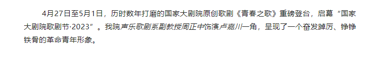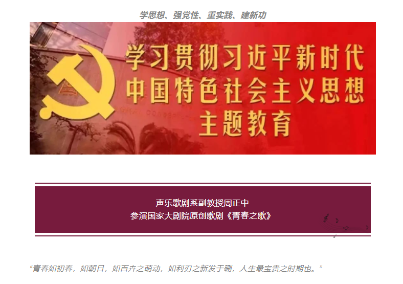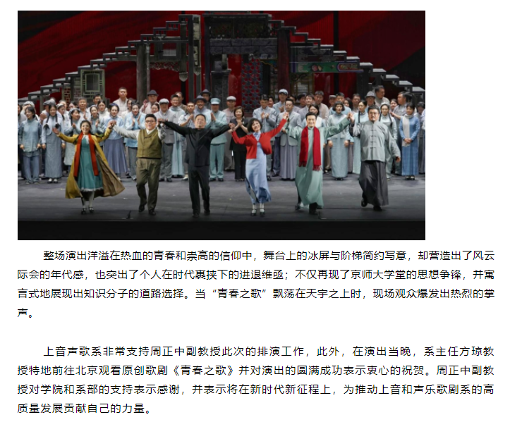 主题教育|以青春之我,踵武青春之中国|声乐歌剧系副教授周正中参演国家大剧院原创歌剧《青春之歌》
