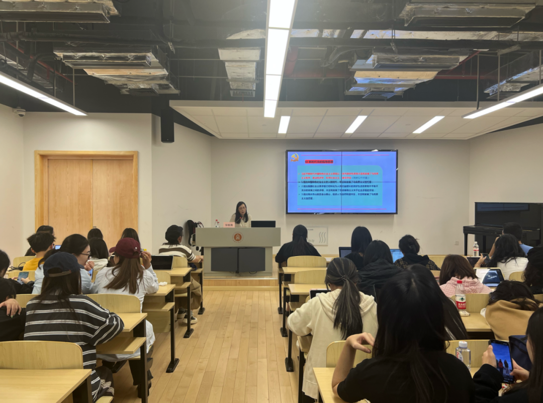 邬敏懿老师聚焦新时代党的指导思想,围绕党章党规党纪和党的基本知识、党的性质宗旨、理想信念教育、爱国主义教育、党性修养提升等内容向同学们进行充分阐述。以坚定信仰、增强党性、提高素质为重点,教育引导同学们深入学习领会习近平新时代中国特色社会主义思想。她带领大家围绕党章的历次修改脉络、党章主要内容的变化,对照新老党章修改部分逐条、逐句、逐字进行原原本本学。邬敏懿老师表示,要以党章作为学习指南,充分了解和体悟党章所包含的精神及要求。