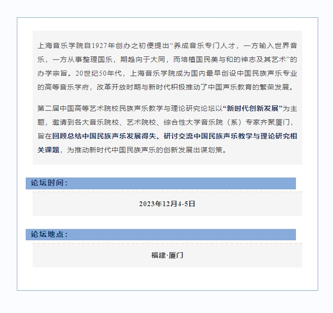 第二届中国高等艺术院校民族声乐教学与理论研究论坛即将开幕!