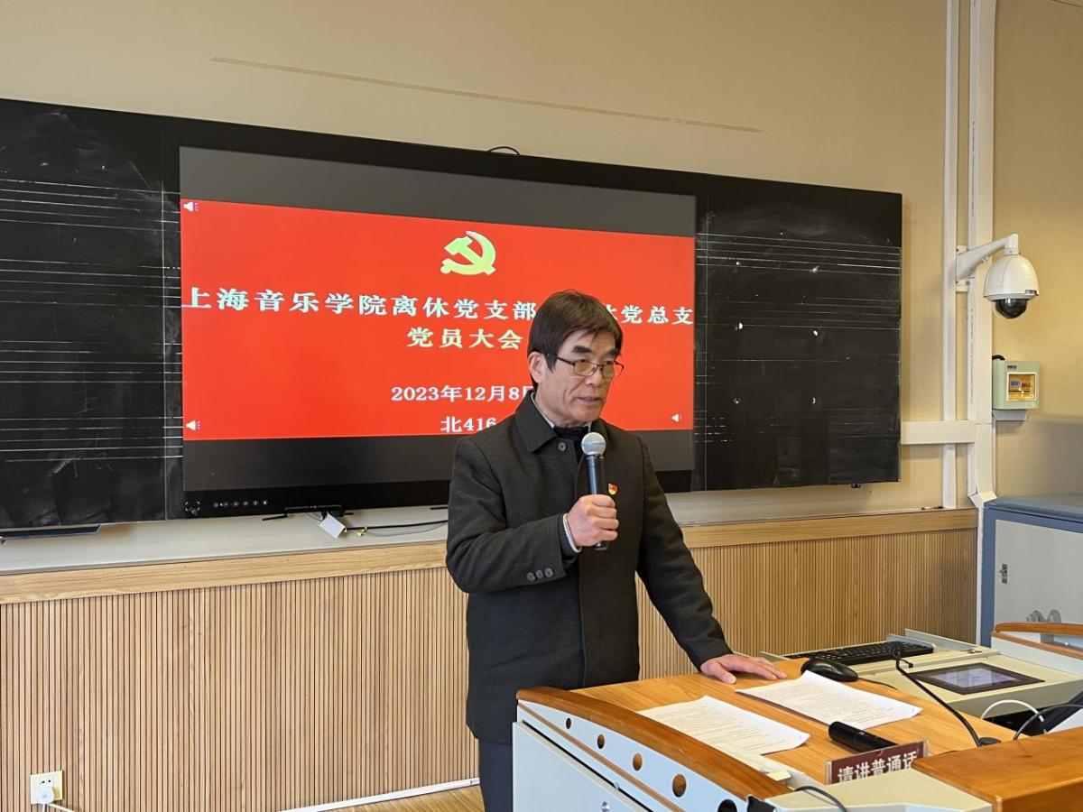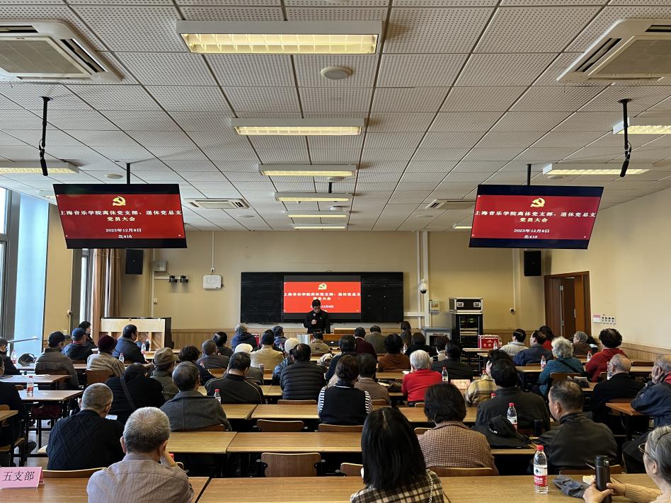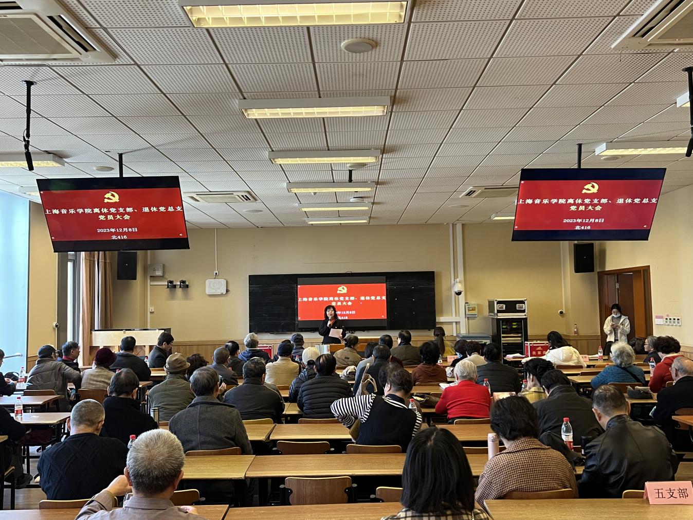 2023年12月8日,上海音乐学院离休党支部、退休党总支党员大会隆重召开,原院党委书记徐爱珠、原院长江明惇等老领导出席。广大离退休党员参加。会议由离退休工作处处长易慧主持。组织部基层党建岗干部范嘉茗列席。