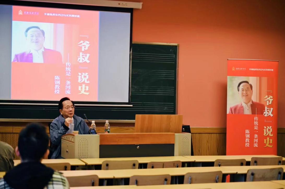 2024年4月12日,上海音乐学院作曲指挥系关工委邀请“离退休教师宣讲团”成员陈钢教授,为师生作《爷叔说史——传统是一条河流》的专题讲座。作曲指挥系关工委主任、党总支书记邱惠柳出席。