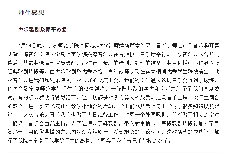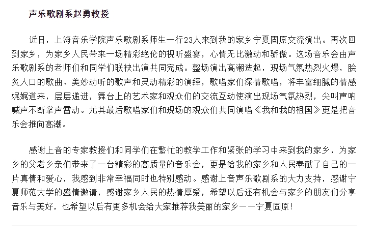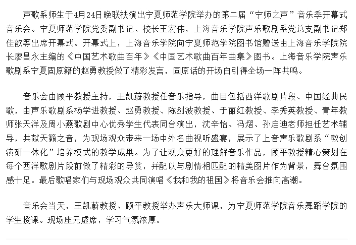 上音声乐歌剧系师生赴宁夏固原交流演出活动