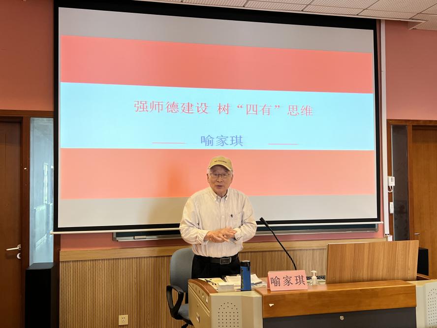 强国先强教,强教先强师。在新时代背景下,教师的师德师风建设对于学校的发展和学生的成长至关重要。为深入学习贯彻落实党的二十大精神和习近平总书记关于教育的重要论述,落实新时代师德师风建设要求,发挥“五老”的教育引导青年教师的优势作用,不断提升教师的职业道德水平,激发教师的教育热情和创造力,明确新时代背景下教师的责任和担当。2024年5月22日中午,由上海音乐学院关工委、离退休工作处主办,党委教师工作部、青年教师联谊会协办,特邀上海音乐学院离退休教师宣讲团成员喻家琪老师为全体新进教职工、部分青年教师开展“强师德建设,树‘四有’思维”主题讲座。院党委教师工作部部长陈晓翌、副部长陆驾云、青年教师联谊会常务副理事长孙宁宁和部分二级关工委主任、副主任出席。讲座由院关工委副主任、离退休工作处处长易慧主持。