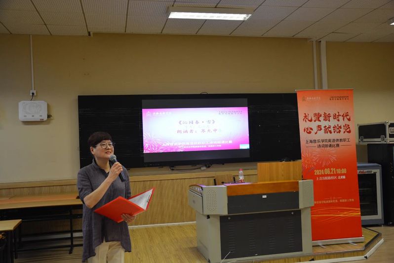 为庆祝中国共产党建党103周年,在“七一”来临之际,为进一步激发广大离退休教职工的爱党爱国热情,2024年6月21日上午,由上海音乐学院离退休党委、离退休工作处主办的“礼赞新时代·心声献给党”离退休教职工诗词朗诵比赛圆满举行。此次活动深切表达了老同志对党的深厚感情,展现了我院离退休教职工热爱生活、健康向上的精神风貌。比赛由离退休党委书记、离退休工作处处长易慧主持。